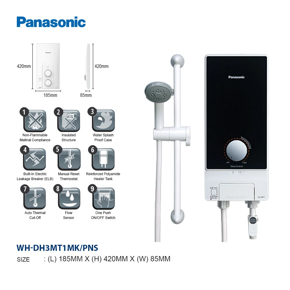 Panasonic DH-3MT1 M-Series Instant Water Heater | Electric Home Shower
