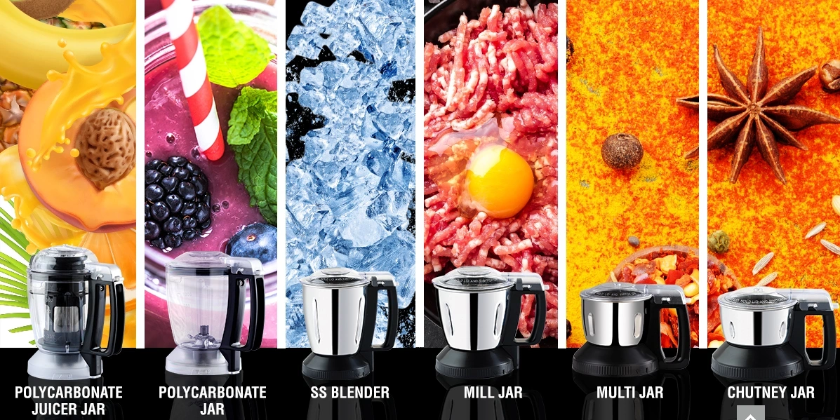 - 4 Jars: 3 Stainless Still Jars & 1 Poly Carbonate Plastic Juicer Jar with Filter