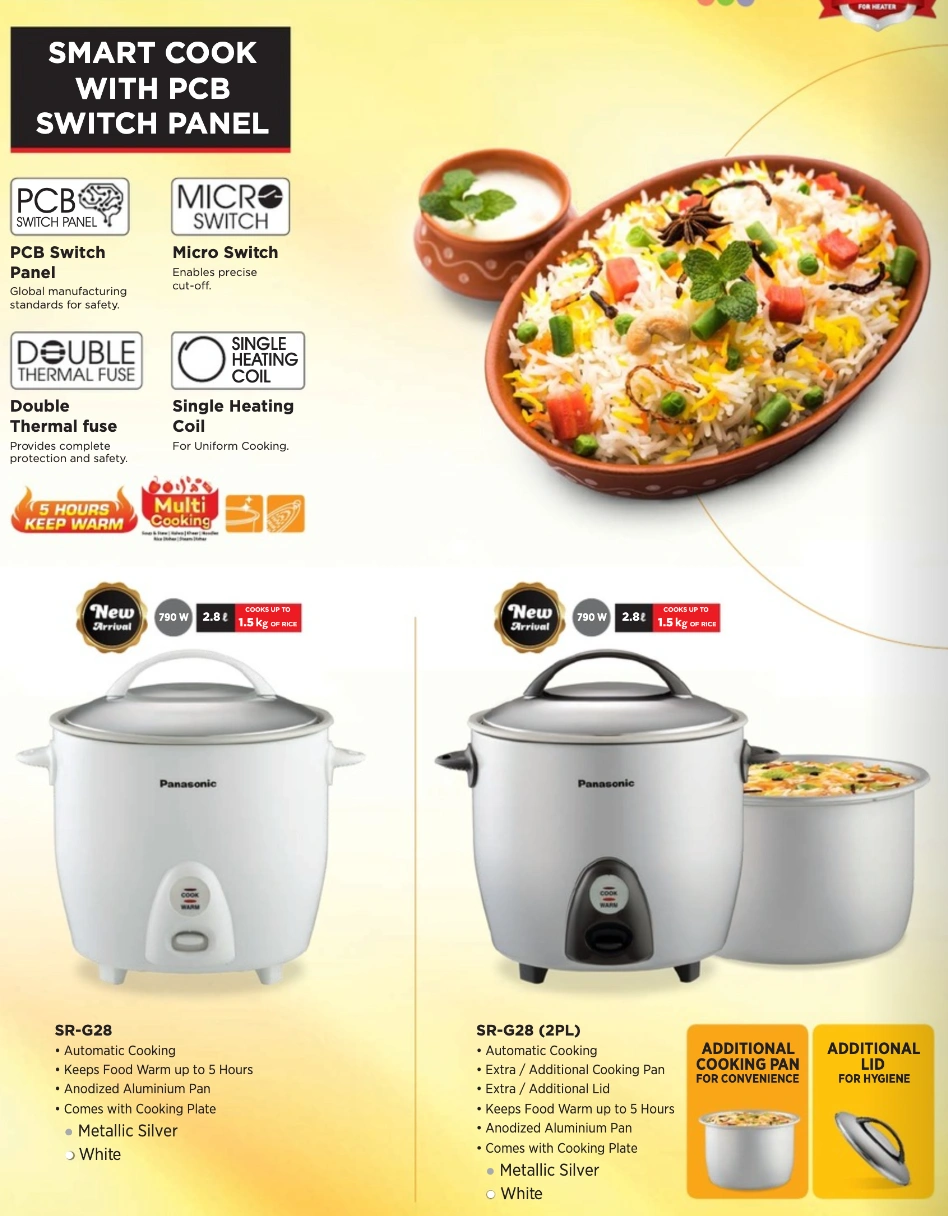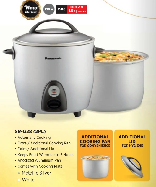 Panasonic SR-G28 (2PL) Automatic Rice Cooker with Double Pan & Lid | 2.8 Liter