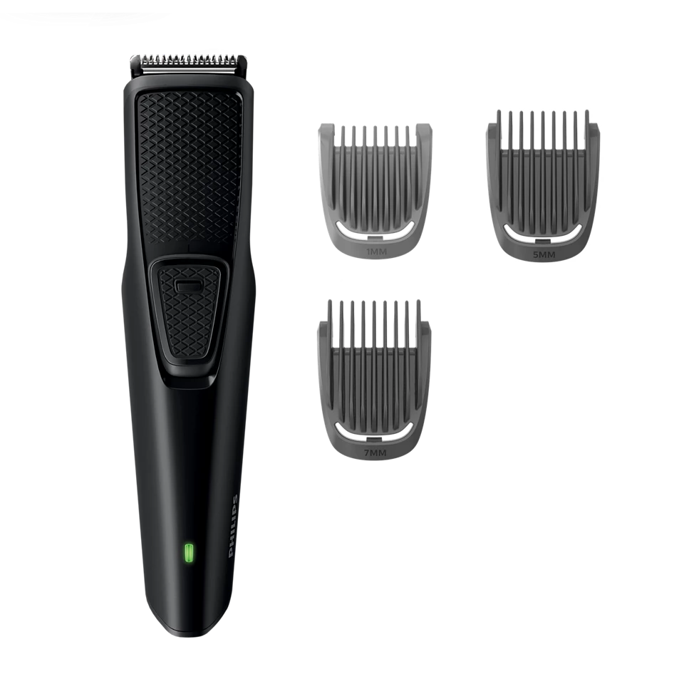 - Choose beard lengths of 1-5-7mm or the zero trim look