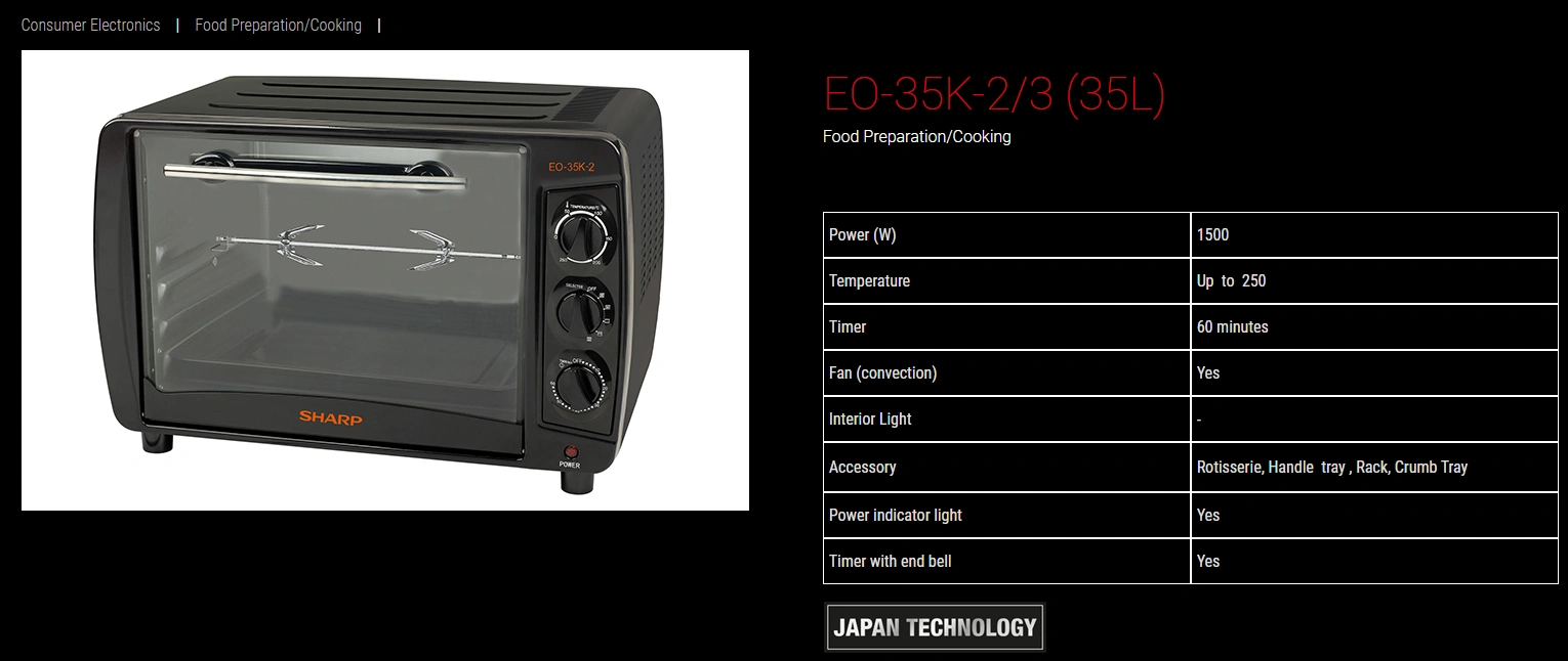 Sharp EO-35K Electric Oven – 35 Liter